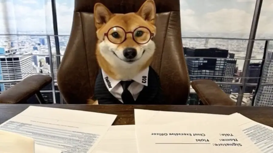 Маск запостил сгенерированное нейросетью видео с изображением собаки породы шиба-ину, которая сидит в деловом костюме за столом. И добавил подпись::