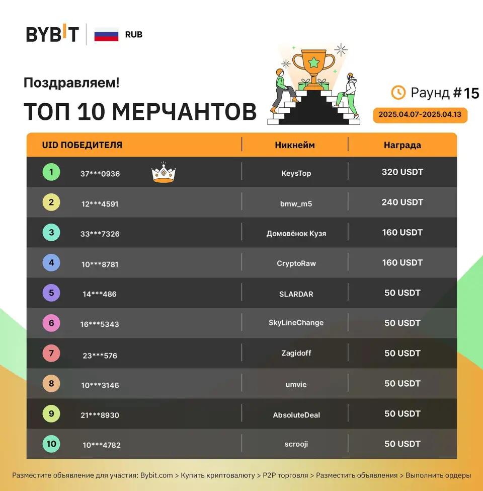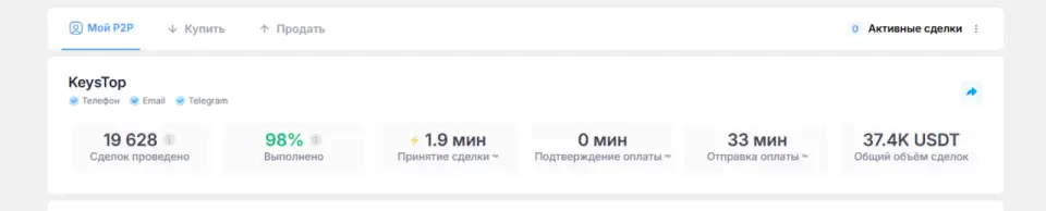 Keys.top имеет большой опыт в сфере P2P-обменов на биржах Bybit, HTX, Rapira, где занимает призовые места по объему торгов.