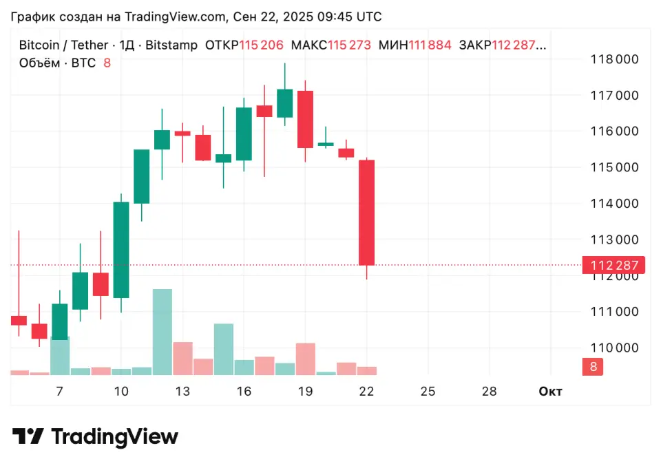 Пробой уровня поддержки биткоина на уровне $115 000 вызвало автоматическое закрытие биржевых позиций трейдеров, переизбыток левериджа (до 100x) и сезонный «эффект сентября», период когда первая криптовалюта традиционно теряет до 4% стоимости.