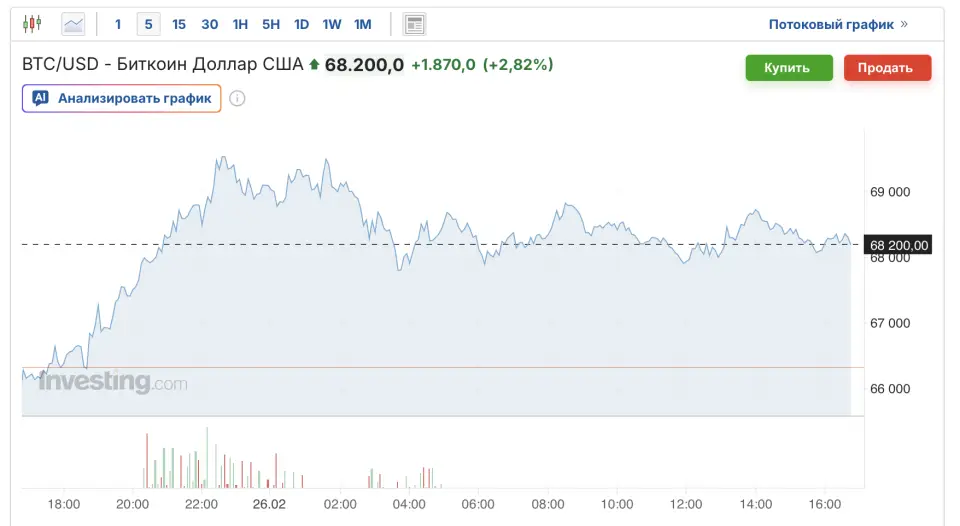 Однако в эту среду, 25 февраля, традиционной распродажи в 10:00 не произошло. В этот день биткоин ненадолго превысил отметку $70 000, а крипторынок прибавил более $170 млрд капитализации. Общая рыночная стоимость выросла примерно на 8% и достигла почти $2,5 трлн. Эфир подорожал более чем на 13%, Solana — на 15%.